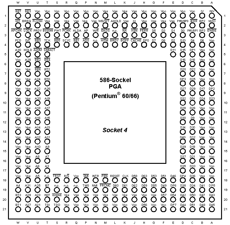 | CPU-Pinout Pentium® 60/66MHz ("Socket 4") - (PGA-273) |