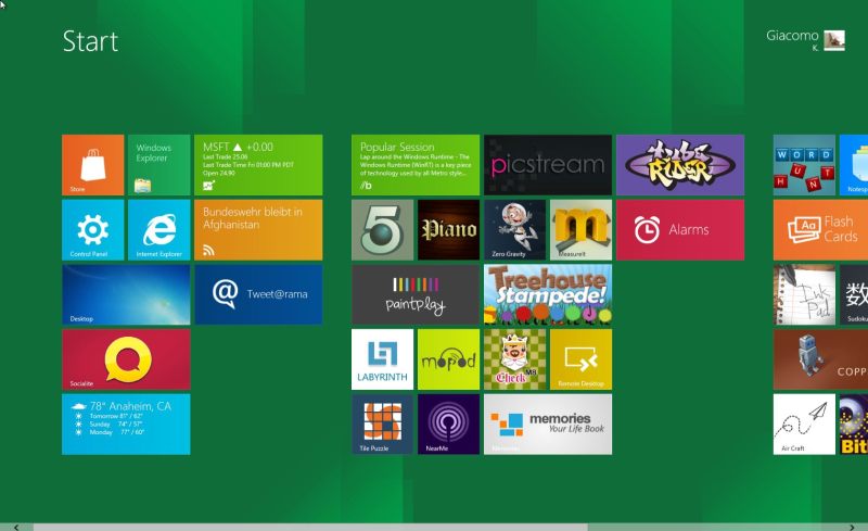 Direkt beim ersten Hochfahren sind im Metro-Bereich von Windows 8 schon viele Programme installiert, welche für Alltagsaufgaben nützlich sind, auch hierbei hat sich Microsoft erkennabr an Systemen für Smartphones und Tablets orientiert, es gibt eigene Email-, Wetter- und Kalenderapps, alle sind vorinstalliert, und bei allen liegt der Fokus auf einer übersichtlichen und einfach gehaltenen Oberfläche, die Mail- und Kalenderapps erinnern zum Beispiel eher an ihre iOS-Pendante als an Outlook Express.