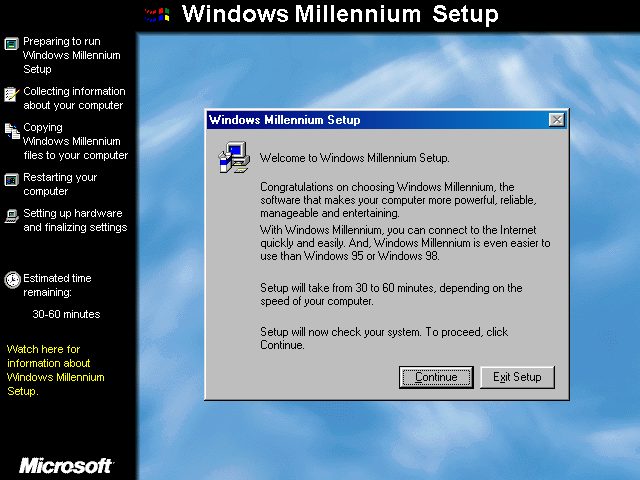 Windows ME Beta Build 2332 Setup als Upgrade von Windows 98: