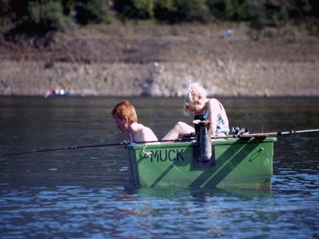 Pärchen beim Angelausflug auf einem See