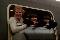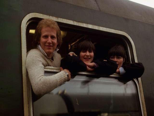 Menschen schauen aus einem Zugfenster