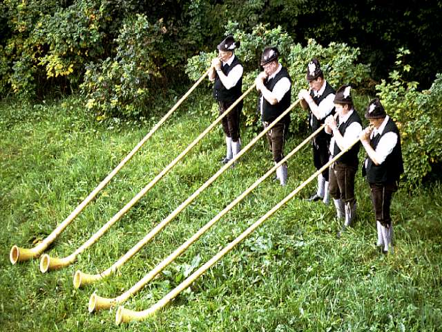 Alpenhörner werden geblasen