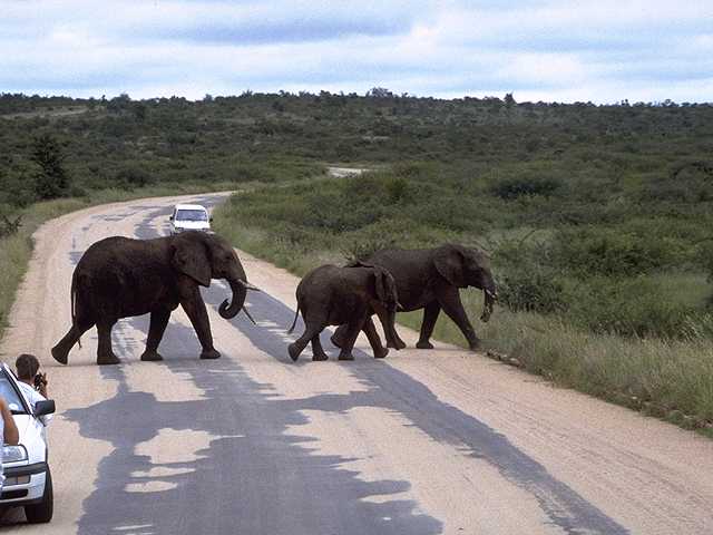 Elefantenfamilie überquert die Straße
