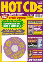 Von der Erotik kommen wir anscheinend nicht mehr los. HOT CD's nennt sich ein Erotik-Magazin, das wir betreuen und alle 2 Monate zusammenstellen. Das 20-Seiten-Heft (Umfang bei gleichem Preis steigend) stellt neue Erotik-CD-ROMs, aufregende Web-Seiten im Internet und Shareware zum Thema Nummer 1 vor. Auf dickem Glanzpapier gedruckt, kommen die vielen Nacktaufnahmen der Zeitschrift richtig gut zur Geltung. Auf der Heft-CD gab es in der Ausgabe 6/96 (DM 12,90) fast 400 hochauflösende Sexfotos inklusive kostenlosem Windows-Betrachter, eine 100-MB-Version des Würfel-Sexspiels Dice A Woman II, animierte Mauszeiger der "schlimmen" Sorte und viele weitere Programme. Die neue Ausgabe 1/97 erscheint am 29. November 97. Sie sollten sich als Erotikfreund auch schon einmal die Ausgabe 2/97 vormerken. Sie bietet eine 100-MB-Version der berühmten Erotik-CD Offenbarungen und zusätzlichen einen äusserst aufregenden Sexkalender von Hubertus Blume.