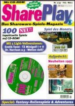 Am 10. Januar 1997 erscheint die zweite Ausgabe der FairPlay, die jetzt SharePlay (DM 16,80) heißt. Bei dieser Zeitschrift handelt es sich um ein Spielemagazin, das sich ganz auf die Shareware konzentriert hat. Über 100 neue, tolle Spiele stellen wir in diesem alle 8 Wochen erscheinenen Magazin äußerst ausführlich vor. Wer gerne spielt und Stunden vor dem Rechner verbringen kann, der kommt an diesem Magazin nicht vorbei. Wir liefern Ihnen 3D-Shooter, Familienspiele, Karten- und Knobelgames, Tetris-Klone und Autorennen satt. Außerdem finden Sie auf unserer Heft-CD tolle Light-Vollversionen der Spiele TZ-Minigolf I, TZ-Minigolf II, Ero-Tarot und Dr. Harrison vor. Für Gamers unverzichtbar: Ein Jahresvorblick auf die Spiele der Shareware-Schmieden Apogee, Epic Megagames und Raven Software. Zusätzlich gibt es viele spielbare Demos von kommerziellen Spielen. Mit neuen IGOR-Comics von Mathias Neumann.