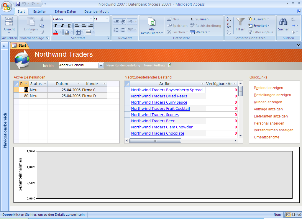 Microsoft Access 2007 mit der Beispiel-Datenbank Nordwind