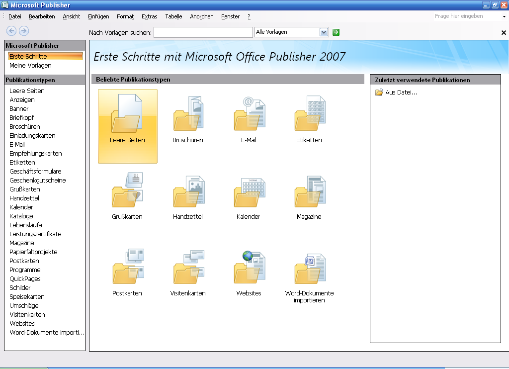 | Microsoft Publisher 2007 unter Windows XP |
