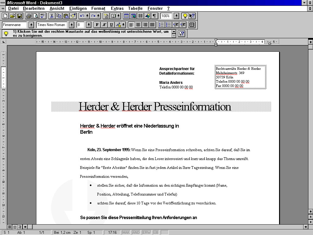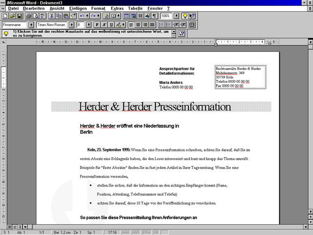 Microsoft Word 95 im Einsatz (zum Vergrößern anklicken)