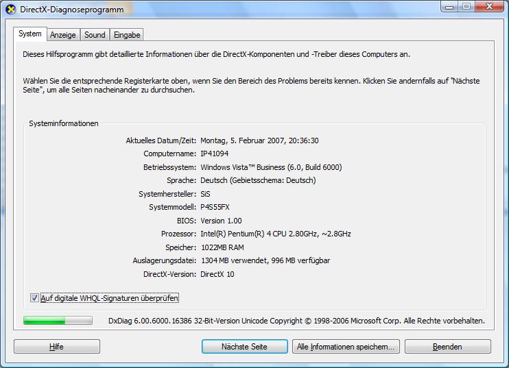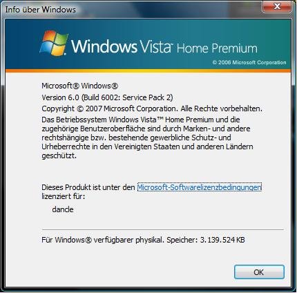 | Juhu, es läuft, Windows Vista mit SP2 |