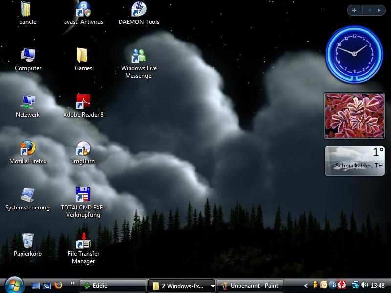 | Der Desktop von Windows Vista, neu hinzugekommen ist die Sidebar |