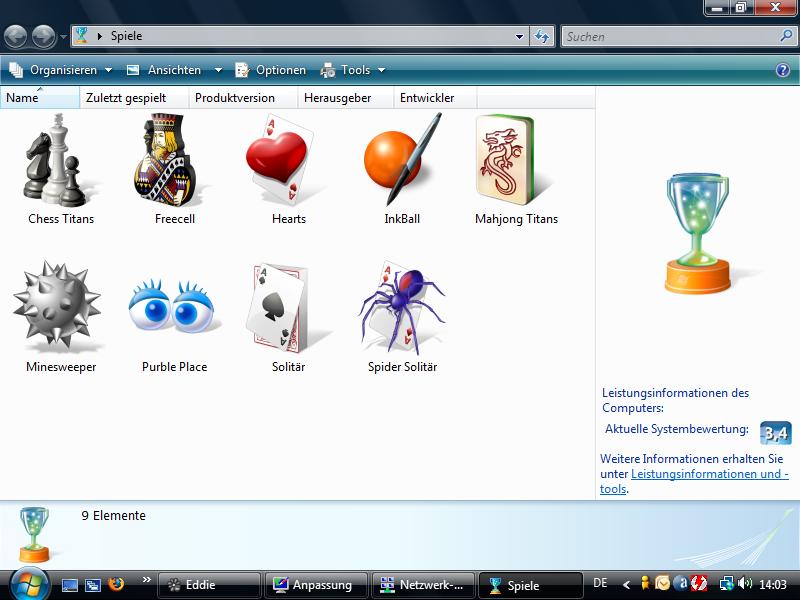 | Die neuen Spiele von Vista, die meisten wurden nur grafisch aufgewertet. |