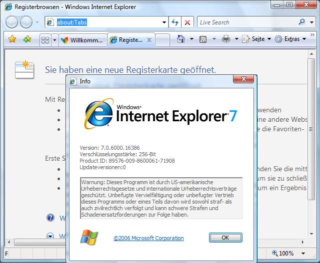 | Internet Explorer 7 unterstützt jetzt auch Tabs. |