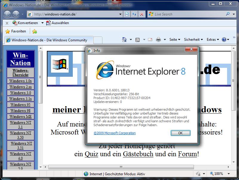 | Internet Explorer 8.0 mit Tabs und Aero unter Windows Vista SP2 |