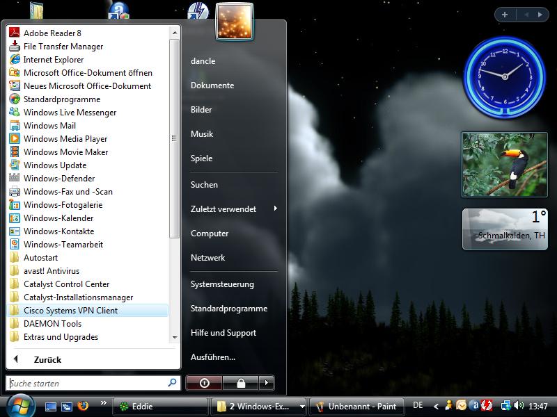 | Desktop mit vollen Aero Style. |