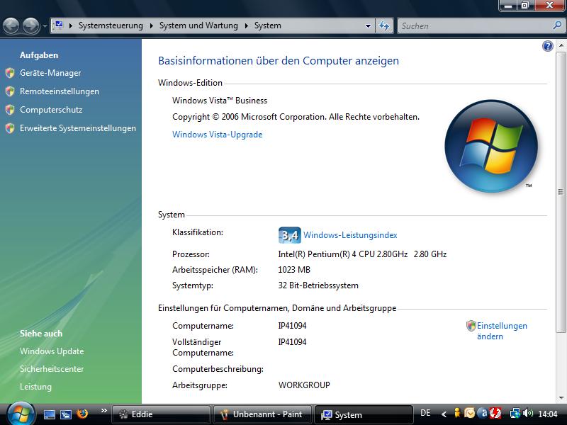 | Die Systemeigenschaften wurden auch Stark überarbeitet, jetzt wird sogar das System bewertet. |