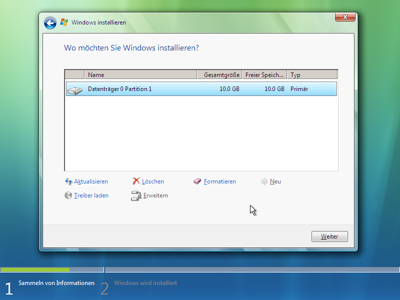 Installation von Windows Vista: