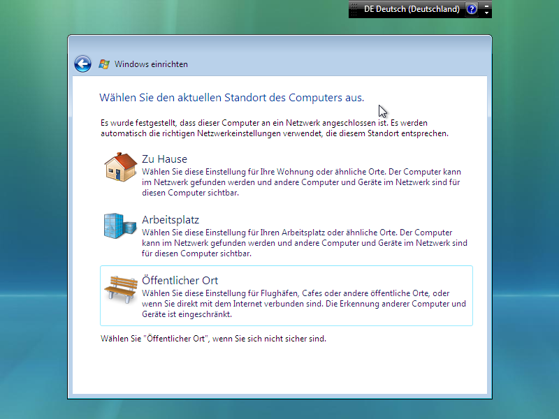 | Fast geschafft, Netzwerkwahl und Vista kann starten |