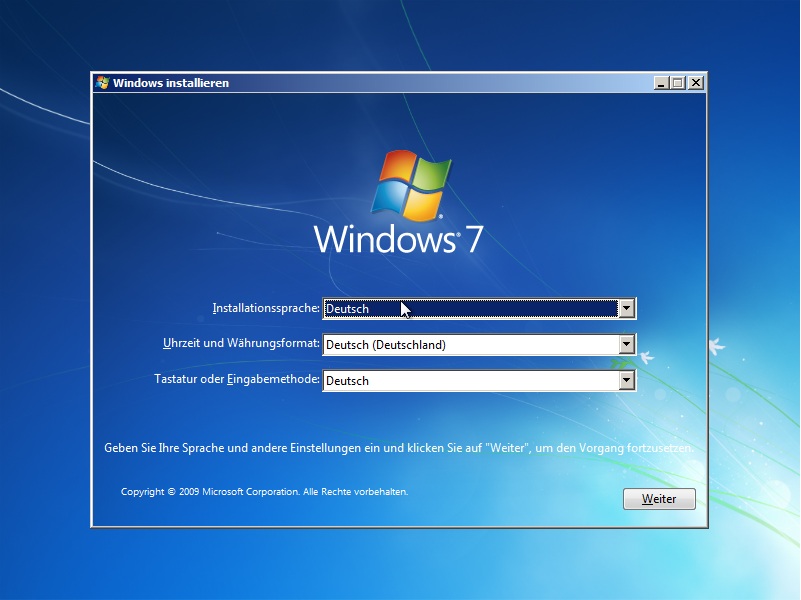 Direkt danach gehts ans eingemachte, die Installation von Windows 7: