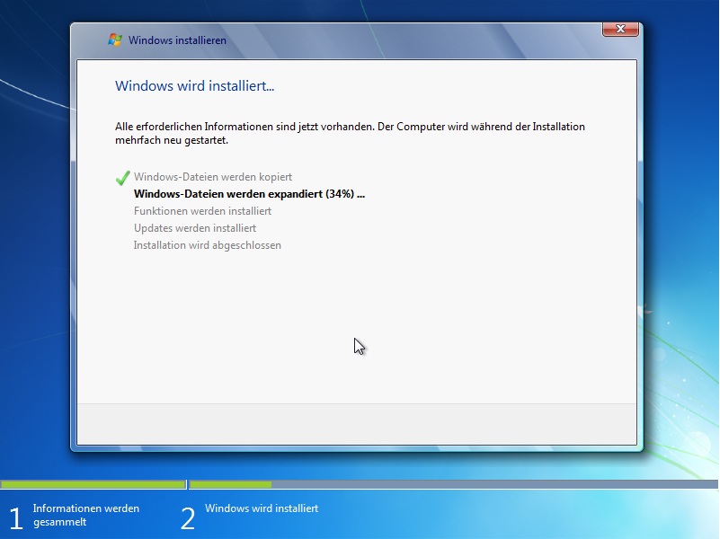 Jetzt ist es endlich soweit, die Dateien werden auf die Festplatte kopiert und expandiert!