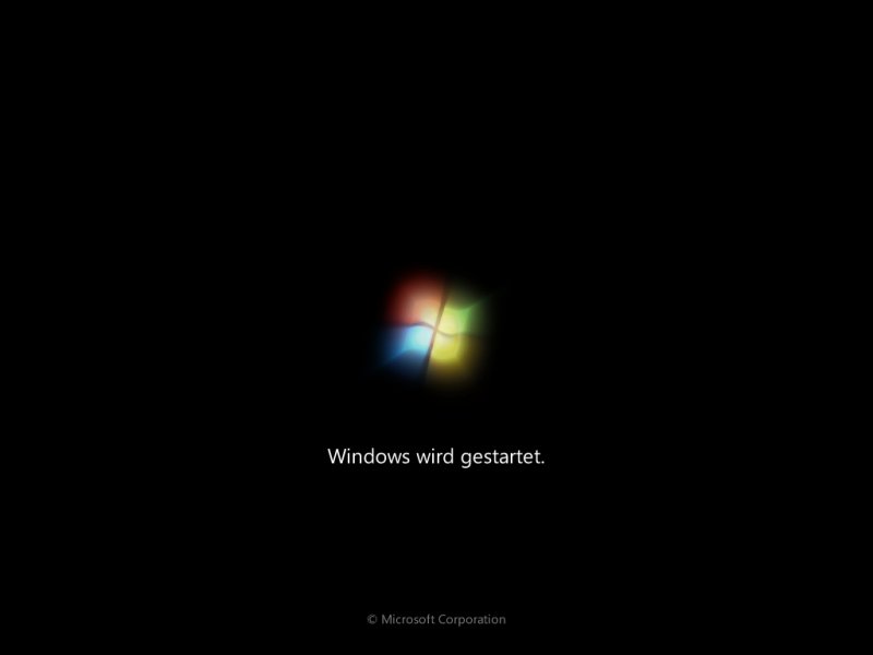 Nachdem folgenden Neustart erscheint zum ersten Mal das erneuerte und wieder schöner animierte Windows-Boot-Logo von Windows 7: