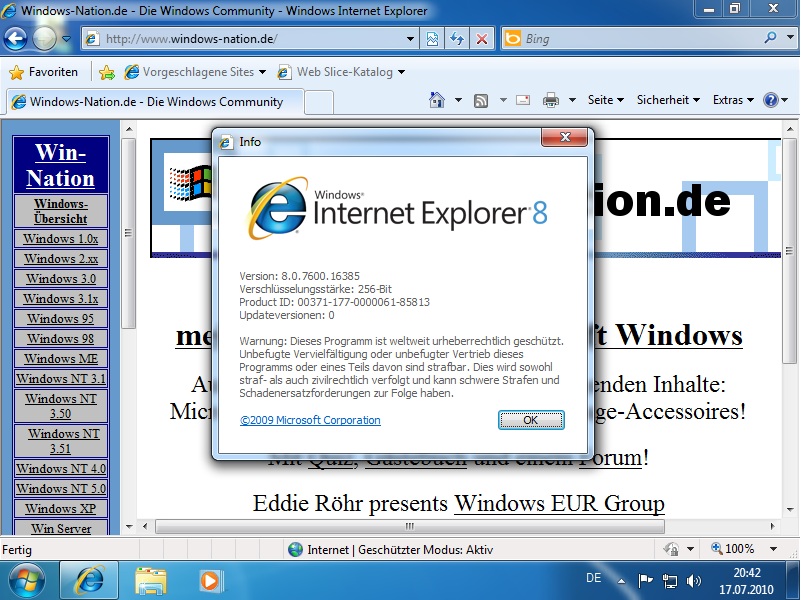 Neu ist natürlich auch wieder eine neue Version des Internet Explorer, Version 8.0 diesmal. Zeitgleich auch die letzte für Windows XP, dessen Zeit durch Windows 7 so langsam ablaufen wird.