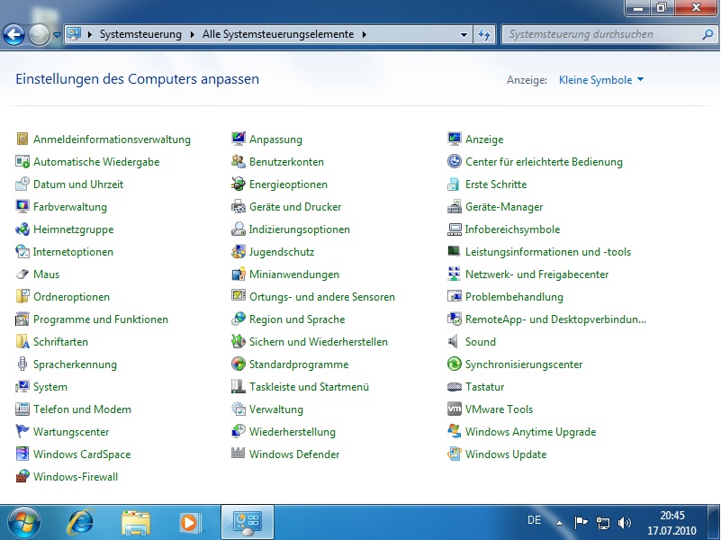 Die Systemsteuerung hat mächtig zugelegt, ganz schön viele Optionen kann man hier festlegen und man verliert schnell den Überblick.