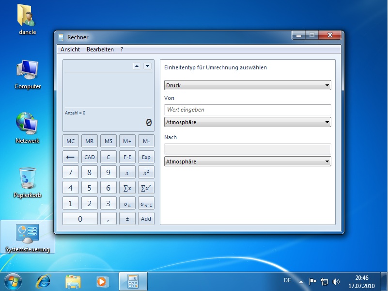 | Arbeitsplatz unter Windows 7 ähnelt Vista |