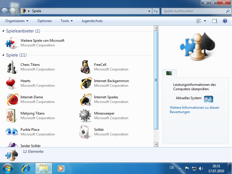 Der in Windows Vista eingeführte Spiele-Explorer wurde in Win7 auch weiterentwickelt, er soll installierte Spiele automatisch erkennen und dort einbinden