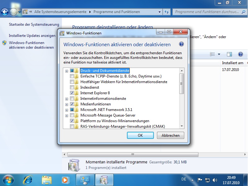 Windows-Funktionen, das was früher Software war, wurde auch angepasst und man kann dort z.B. die Spiele deaktivieren/ aktivieren. Beim IE werden nur Symbole entfernt. Nicht der IE selber.