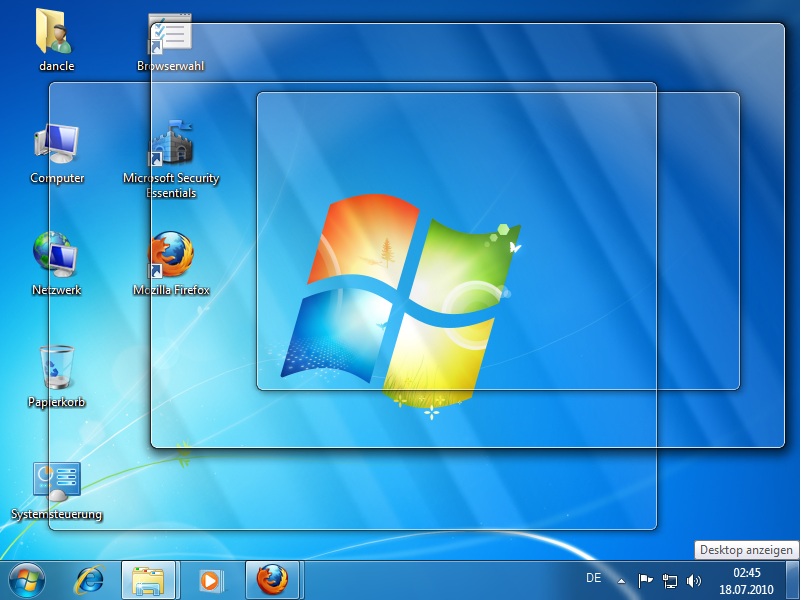 | Transparent-Effekte unter Windows 7, wenn man die Maus auf Desktop anzeigen hält |
