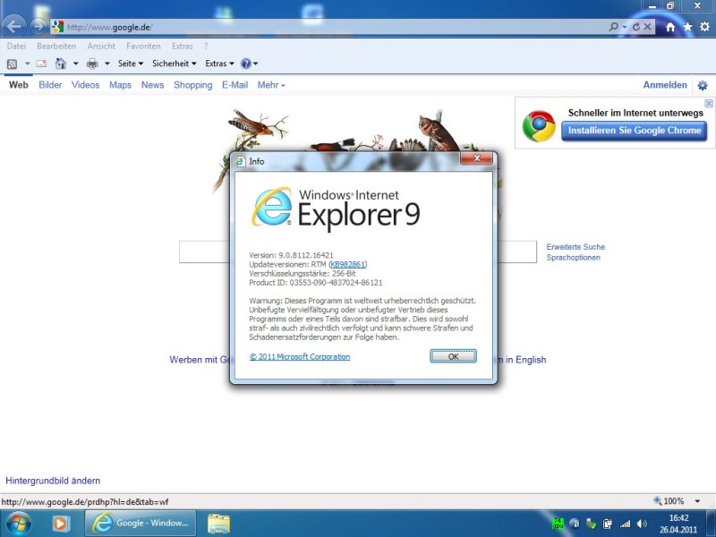 | Der Internet Explorer 9.0 unter Windows 7 mit Service Pack 1 |