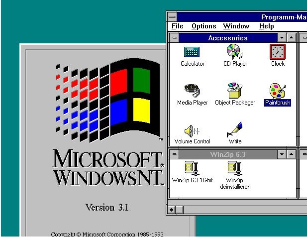 Windows NT 3.1 kam im Juli 1993 nach einer sehr langen Beta- und Entwicklungsphase auf den Markt. Bereits seit 1988 wurde an den ersten Konzepten zu NT gearbeitet. Damals arbeitete Microsoft mit IBM zusammen an dem 32-Bit Betriebssystem OS/2. Nachdem großen Erfolg der grafischen Oberfläche "Windows 3.0" entschied man bei Microsoft, dass OS/2 Version 3 (NT) das Aussehen von Windows und nicht das von OS/2 tragen soll. Als 1991 Mitarbeiter von IBM diese Entscheidung mitbekamen, kündigten Sie die Zusammenarbeit mit Microsoft. Dann wurde aus OS/2 Version 3 Windows NT. Dieses Betriebssystem hatte keinerlei Altlasten, die es mit sich rum schleppte und war komplett in 32-Bit. Nach dem noch größeren Erfolg von Windows 3.1 wurde diese Oberfläche für das endgültige Aussehen von Windows NT gewählt. Die Versionsnummer 3.1 ist nur deshalb gewählt worden, um mit "Windows 3.1" optisch gleichzuziehen.