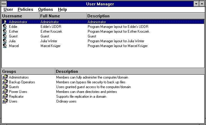 Der Benutzer-Manager war zum ersten Mal in Windows NT 3.1 vorhanden: