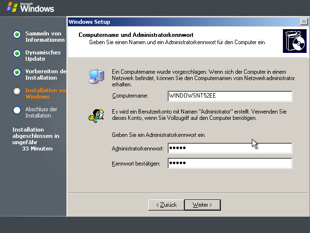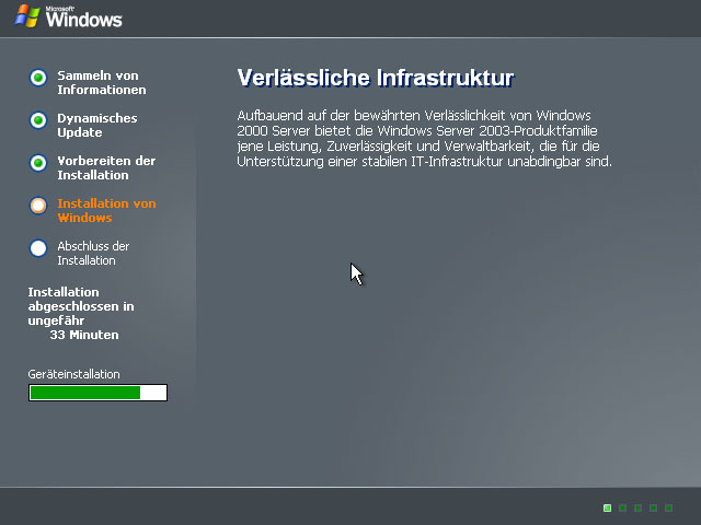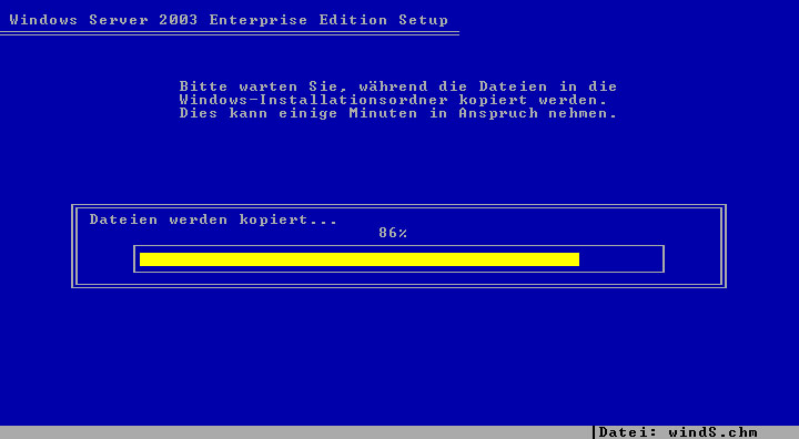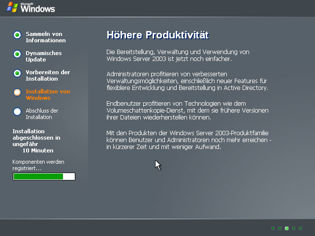 | Auch in Windows Server 2003 wird viel kopiert, ca. 8000 Dateien. |