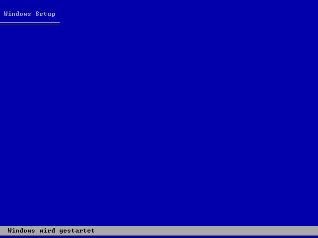 | Der erste Neustart von Windows 2003 und damit Verlassen des DOS-basierten Teils. |