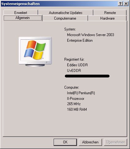 Installation von Windows Server 2003: (THX to dancle for Screenshots)
