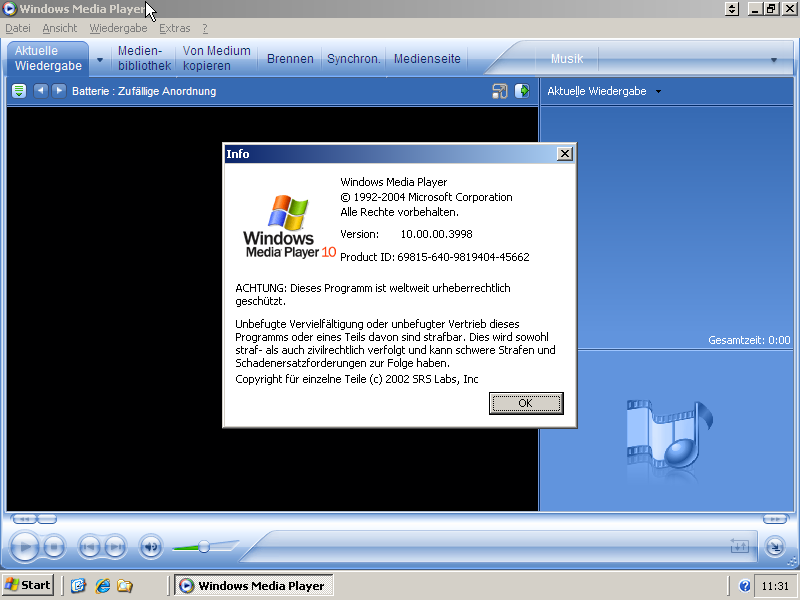 Der Windows Media Player 10 wird bei Windows Server 2003 durch die Installation der Updates von Windows Update lediglich auf Build 3998 aktualisiert. Es gibt keine Option für den 11er und die manuelle Installation schlägt auch fehl.
