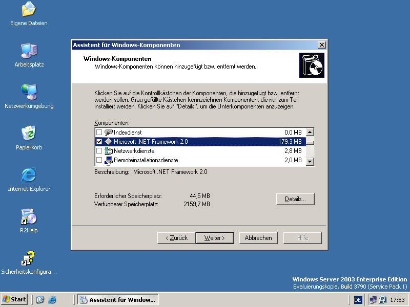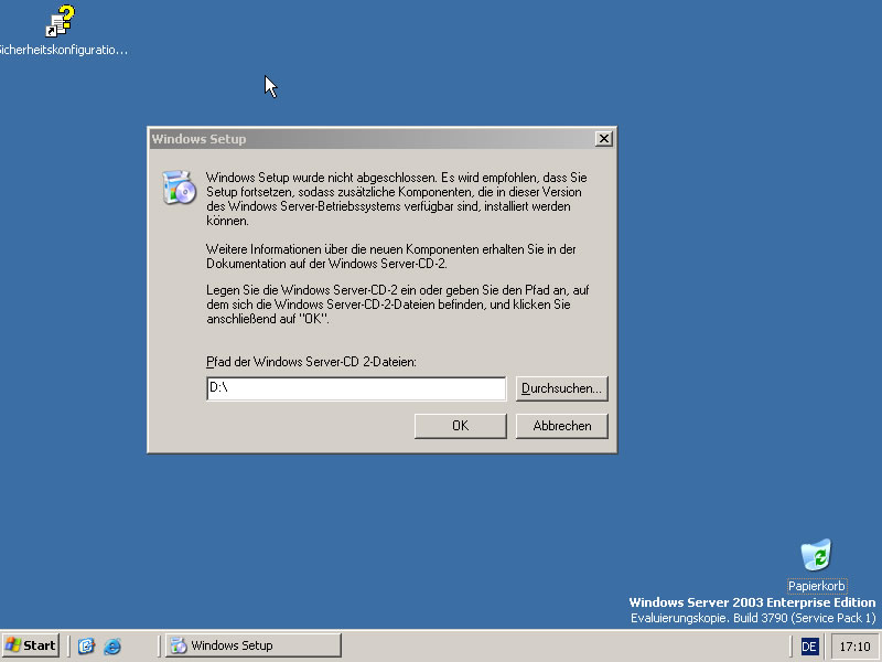 Nach dem Anmelden möchte Windows die zweite CD, das eigentliche R2 haben. Wenn man diese nicht installiert hat man ein normales Windows Server 2003 - System verstößt aber möglicherweise gegen die Lizenzbestimmungen.