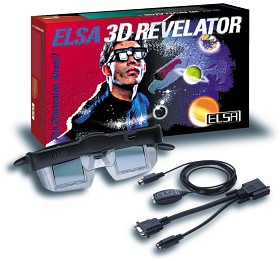 Die neue 3D-Brille ELSA 3D REVELATOR mit LCD-Shutter-Technologie entlockt Spielen und anderen 3D-Anwendungen eine bisher unerreichte räumliche Darstellung. Mit dieser aktiven 3D-Brille mit zum Patent angemeldeter, neuester Ansteuerungstechnik und einer ELSA-Grafikkarte wird aus fast jedem Computerspiel ein unvergleichliches, faszinierendes Erlebnis. Das Bild erscheint auf dem herkömmlichen PC-Monitor in beeindruckender dreidimensionaler Tiefe, welche nur mit der einer holographischen Abbildung vergleichbar ist. 3D-Spiele erwecken plötzlich eine Faszination, die ihresgleichen sucht, und werden ihrer Bezeichnung als 3D-Games nun auch visuell voll gerecht. Man spürt jetzt förmlich den heißen Atem der angreifenden Monster, riecht das Gummi beim Kick-Down seines Countach und fühlt die schmerzhaften Bodychecks der NHL-99-Verteidiger. Ohne Übertreibung ist die ELSA 3D REVELATOR Dreidimensionalität in ihrer reinsten Form!