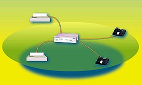 Für den professionellen Internet-Zugang sind LANCOM-Router die ideale Lösung. Über das standardisierte TCP/IP-Protokoll verbinden sie das LAN mit dem System eines Internet-Service-Providers oder eines Online-Dienstes (z.B. AOL oder T-Online). Alle User im LAN können gleichzeitig auf die Dienste zugreifen, ohne daß an den Arbeitsplätzen Modems oder ISDN-Karten notwendig sind. Dabei gibt LANCOM keine künstlichen Beschränkungen für die Anzahl der Gegenstellen. Zeitraubende Konfigurationen an den einzelnen Arbeitsplätzen erübrigen sich durch die zentrale Internet-Anbindung, denn alle Workstations im LAN werden aus der Ferne gewartet. | |