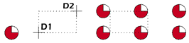 Ein Auswahlfenster, mit dem Objekte ausgewählt werden, die sich ganz oder nur teilweise in diesem Fenster befinden (siehe auch Identifizieren und Auswahlfenster)