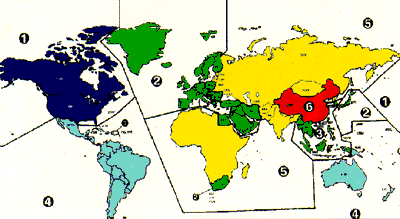 - Region 5: Russland, Osteuropa, Indien, Afrika (außer Südafrika)