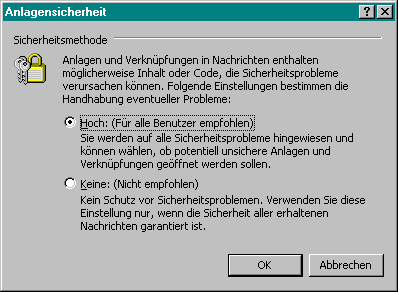 So oder ähnlich funktionieren fast alle - egal, ob sie nun "Penpal Greetings", "Irina", "Make Money fast", "Deeyenda", "Join the Crew" oder "PKZ300" heißen. Einer der Klassiker des Genres ist die Warnung vor einem Virus namens "Good Times", die immerhin seit 1994 durch das Netz geistert und mittlerweile legendären Status erreicht (siehe Beispiel). Der "Chaos Computer Clubs" in Hamburg warnt vor Leichtgläubigkeit: "Wer etwas nachdenkt, kommt darauf, daß das Quatsch sein muß. Die Warnungen enthalten zudem oft völlig allgemeine Aussagen, wie JEDER, der diese Mail öffne, sei betroffen, ALLE Computer würden zerstört, obwohl so etwas nicht möglich ist." Kein Virus sei in der Lage, so der Club, sämtliche Mail-Programme und Computer- Konfigurationen so genau zu kennen, daß er auf allen Rechnern Schaden anrichten könne. "Jede Warnung im Internet per E-Mail ist primär erstmal als Hoax oder Verulkung einzustufen". Insofern sind Hoaxes durch die Ausfälle an Arbeitszeit dann doch oft gefährlich: von der "Good Times"-Warnung gibt es immerhin ein Fax, das sechs Seiten Verteiler-Adressen enthielt. Schwarzen Humor bewiesen die Programmierer des E-Mail-Virus Win.RedTeam, der vor einem Virus warnt und ein entsprechendes Programm zum Entfernen mitliefert. Tatsächlich ist dieses Programm der eigentlich Virus. Da viele Antiviren-Programme immer nur auf schon bekannte Viren reagieren, geben Experten immer wieder den Rat, angehängte Dateien von unbekannten E-Mails nicht zu lesen, sondern sie sofort zu löschen. Hoaxes spielen mit der Unsicherheit vieler Computer-Nutzer beim Umgang mit ihrem Gerät: was als Service dienen soll, beispielsweise der automatische Aufruf bestimmter Programme, macht es immer undurchschaubarer, was auf dem eigenen PC vor sich geht. Das allzu Komfortable hat auch seine Nachteile. Generell sollte man verhindern, daß Programme ohne Bestätigung des Benutzers gestartet werden können. Einfache Text-Mail, die mit einem normalen Programm gelesen wird, kann keinen Schaden anrichten.