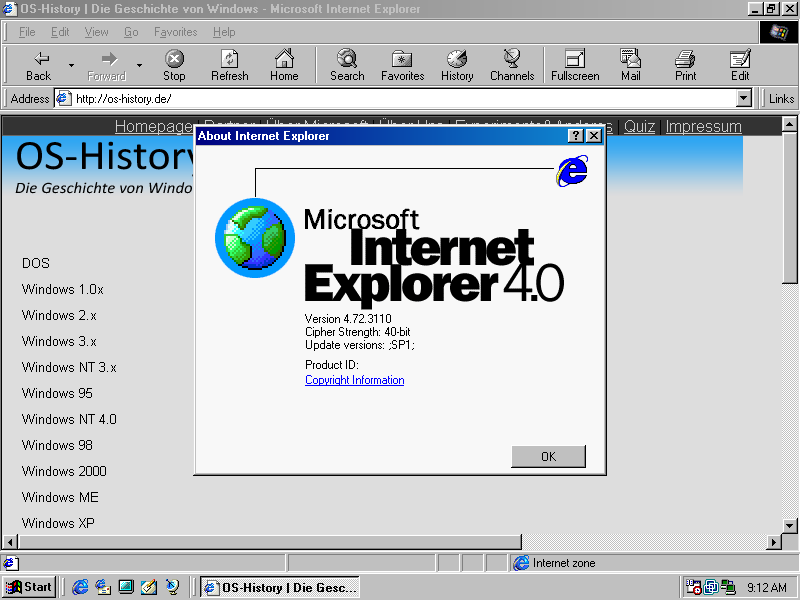 Der Internet Explorer 4 aus Windows 98FE auf OS-History.de: