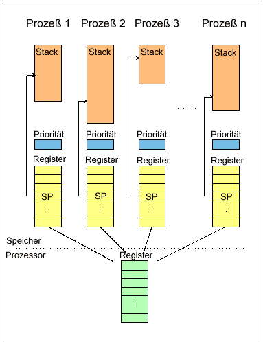 - Die Speicherung der Prozeßzustände erfolgt in einer vom BS