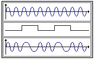 Den Wertigkeiten "1" und "0" werden zwei verschiedene Frequenzen