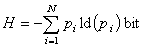 | Dabei gilt: N = Gesamtzahl der verwendeten Zeichen pi = Wahrscheinlichkeit für das Auftreten des Zeichens i ld = Logarithmus zur Basis 2 |