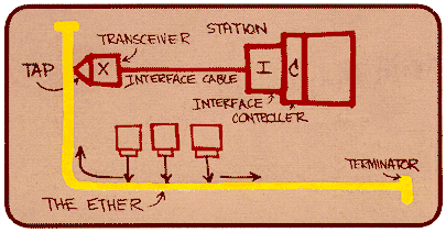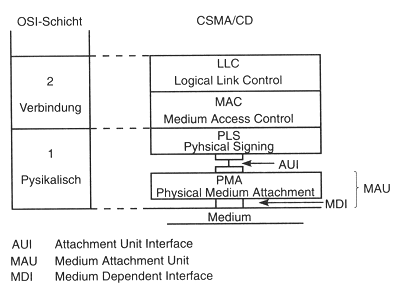 Nach einer gewissen Zeit, die aus der Ausbreitungsgeschwindigkeit der Signale und der Entfernung der sendenden Station zu den beiden Kabelenden resultiert, sind die Signale 'verschwunden' und das Kabel wieder frei. Dieses Prinzip liegt allen Ethernet-Varianten zugrunde. Es gibt jedoch Unterschiede in der Topologie des Netzes und beim verwendeten Kabel.