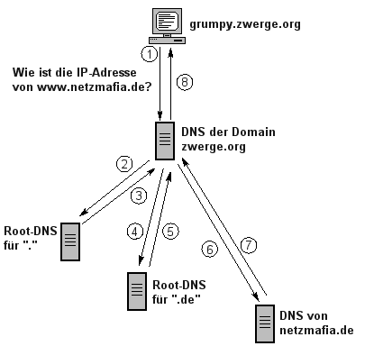 Die Ethernet-Adresse wurde bereits behandelt, auf die anderen beiden Ebenen wird in den folgenden Abschnitten eingegangen. Die Umsetzung der höchsten Ebene (Domain-Namen) in IP-Adressen erfolgt durch das oben erwähnte DNS, worauf die Dienstprogramme der Schichten 5-7 zurückgreifen.