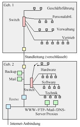 ringförmig mit Lichtwellenleitern). Die Standorte der Rechner und